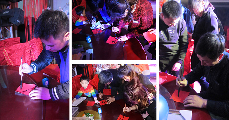集福送祝福:每一位員工都將“福”字寫下,滿滿一桌子的祝福,送個自己,送個大家。